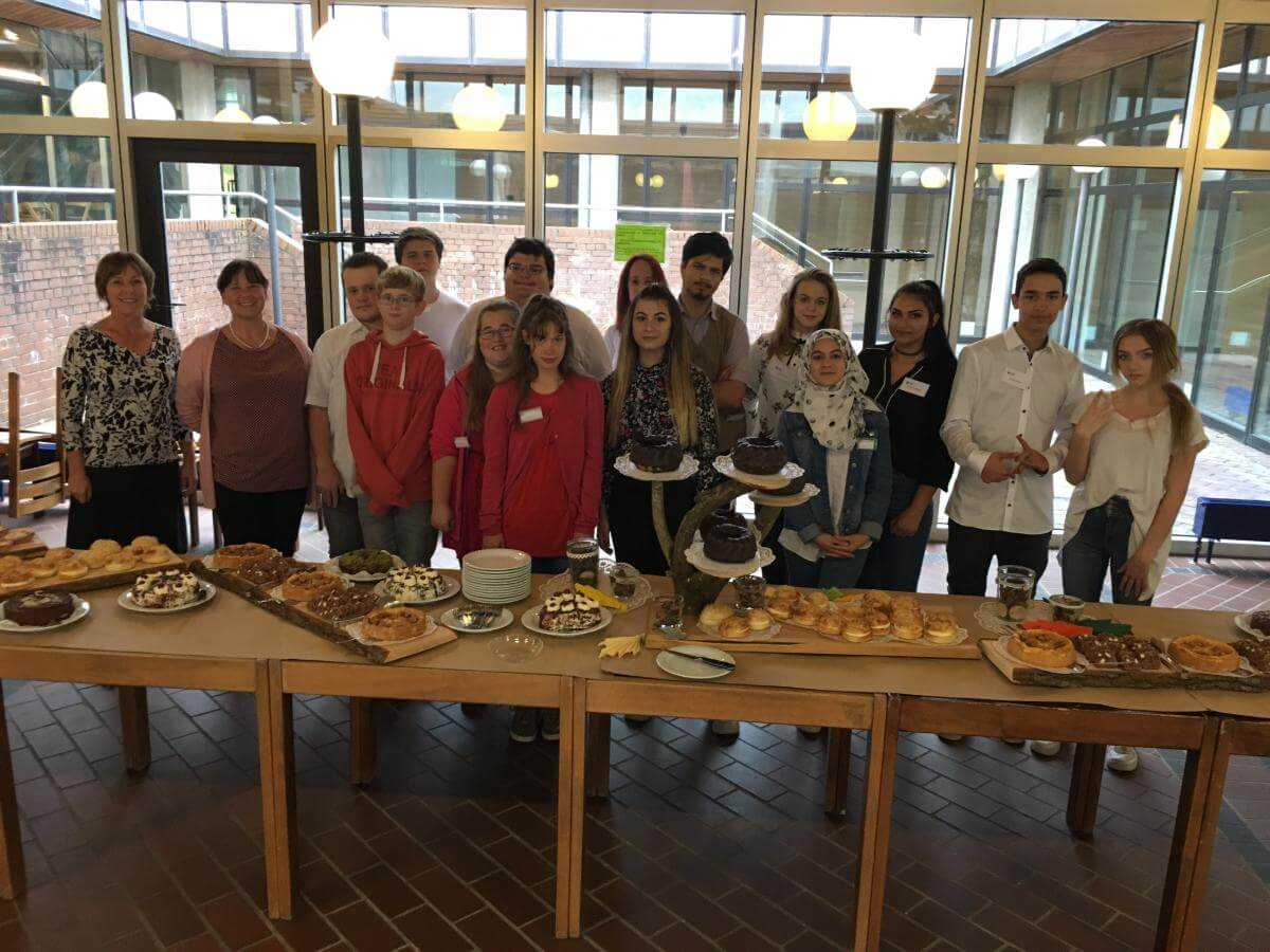 Schüler der VAB-Klassen und des BVE sorgten mit einem Projekttag für die Durchführung des Sektempfangs, die Tischdekoration, Bewirtung mit Getränken und Kuchen, Bestuhlung der Aula, der Herstellung aller Gebäcke und natürlich auch aller damit verbundenen Spül- und Aufräumarbeiten. Alle Schüler und Schülerinnen haben sich dabei von ihrer besten Seite gezeigt und sich unermüdlich um das Wohl der Gäste gesorgt.