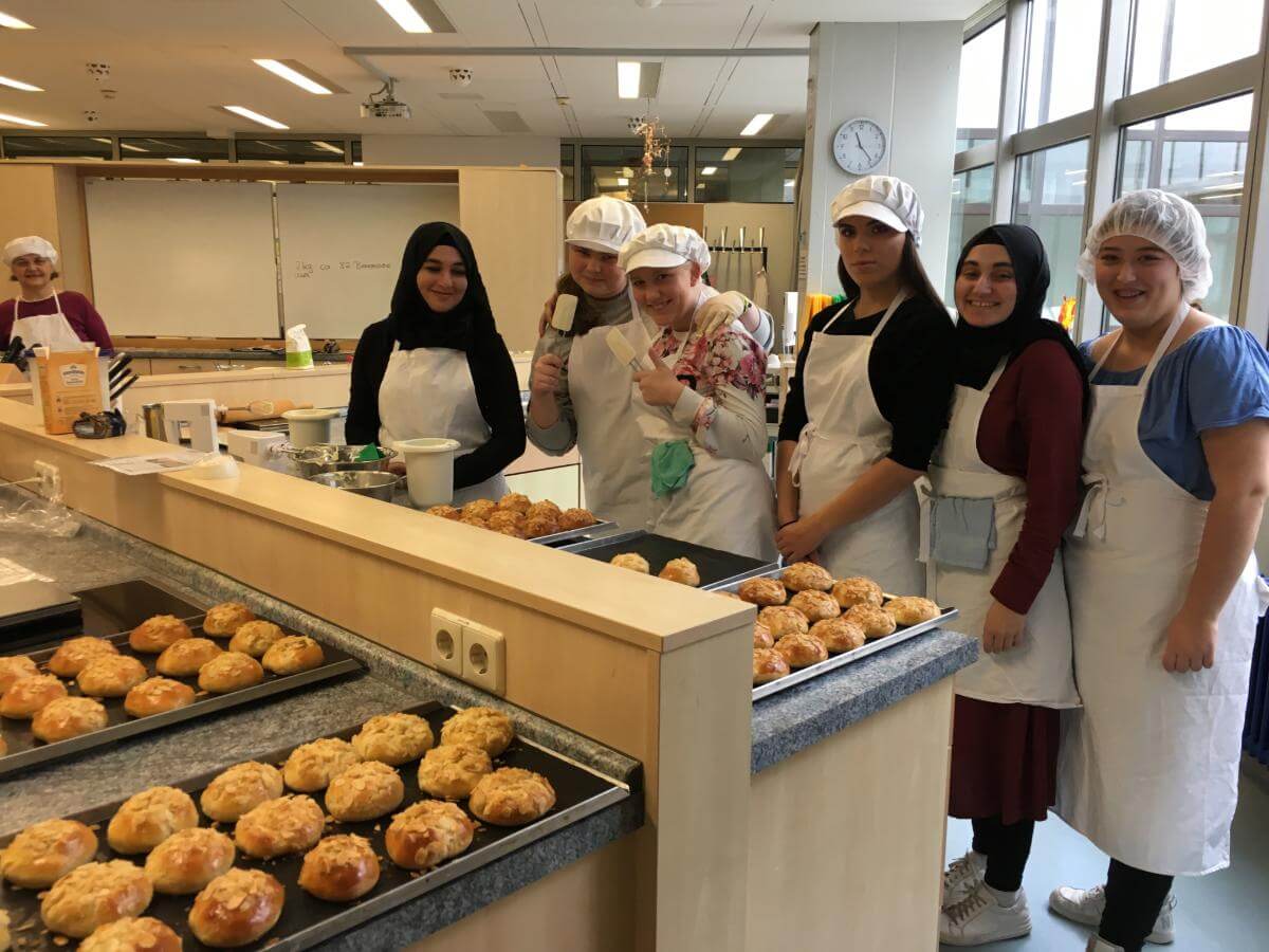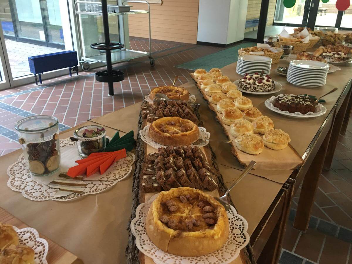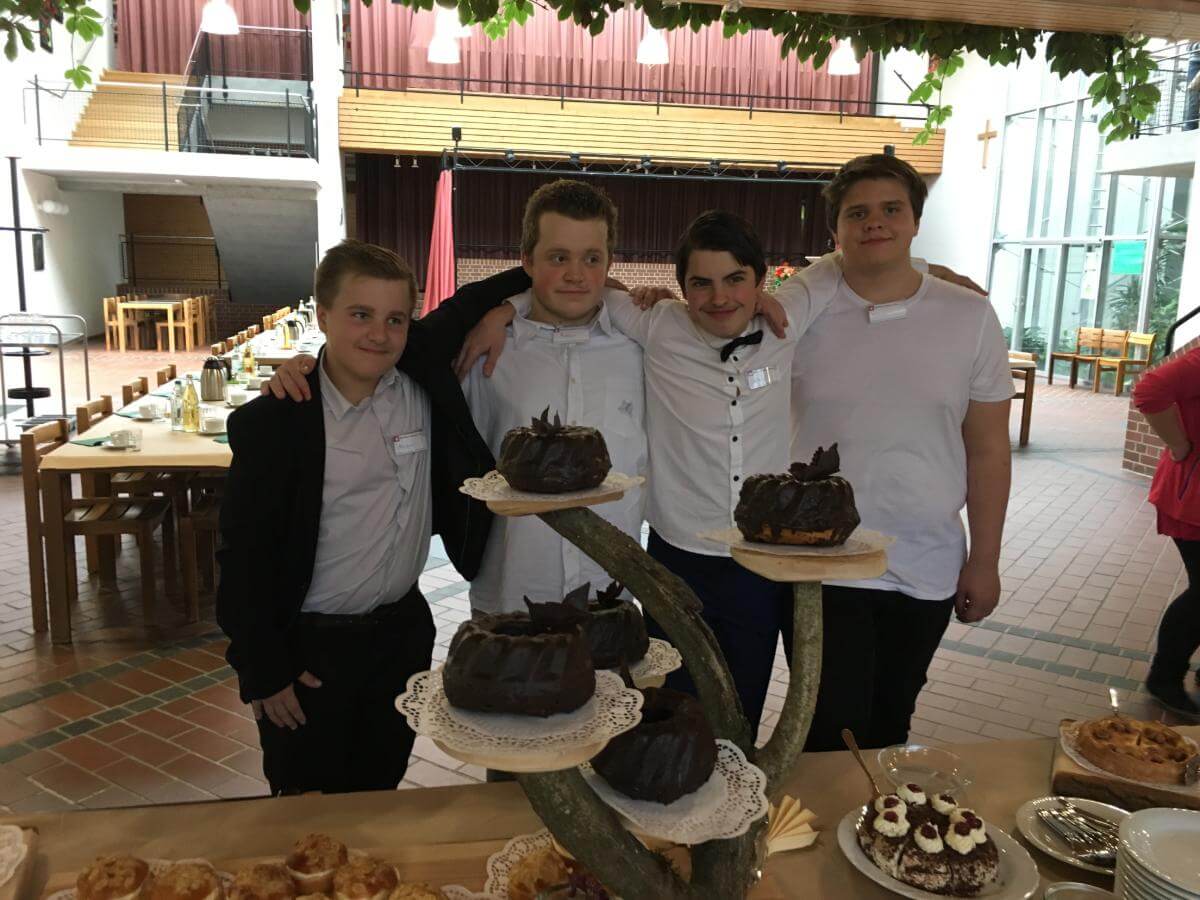 Schüler der VAB-Klassen und des BVE sorgten mit einem Projekttag für die Durchführung des Sektempfangs, die Tischdekoration, Bewirtung mit Getränken und Kuchen, Bestuhlung der Aula, der Herstellung aller Gebäcke und natürlich auch aller damit verbundenen Spül- und Aufräumarbeiten. Alle Schüler und Schülerinnen haben sich dabei von ihrer besten Seite gezeigt und sich unermüdlich um das Wohl der Gäste gesorgt.