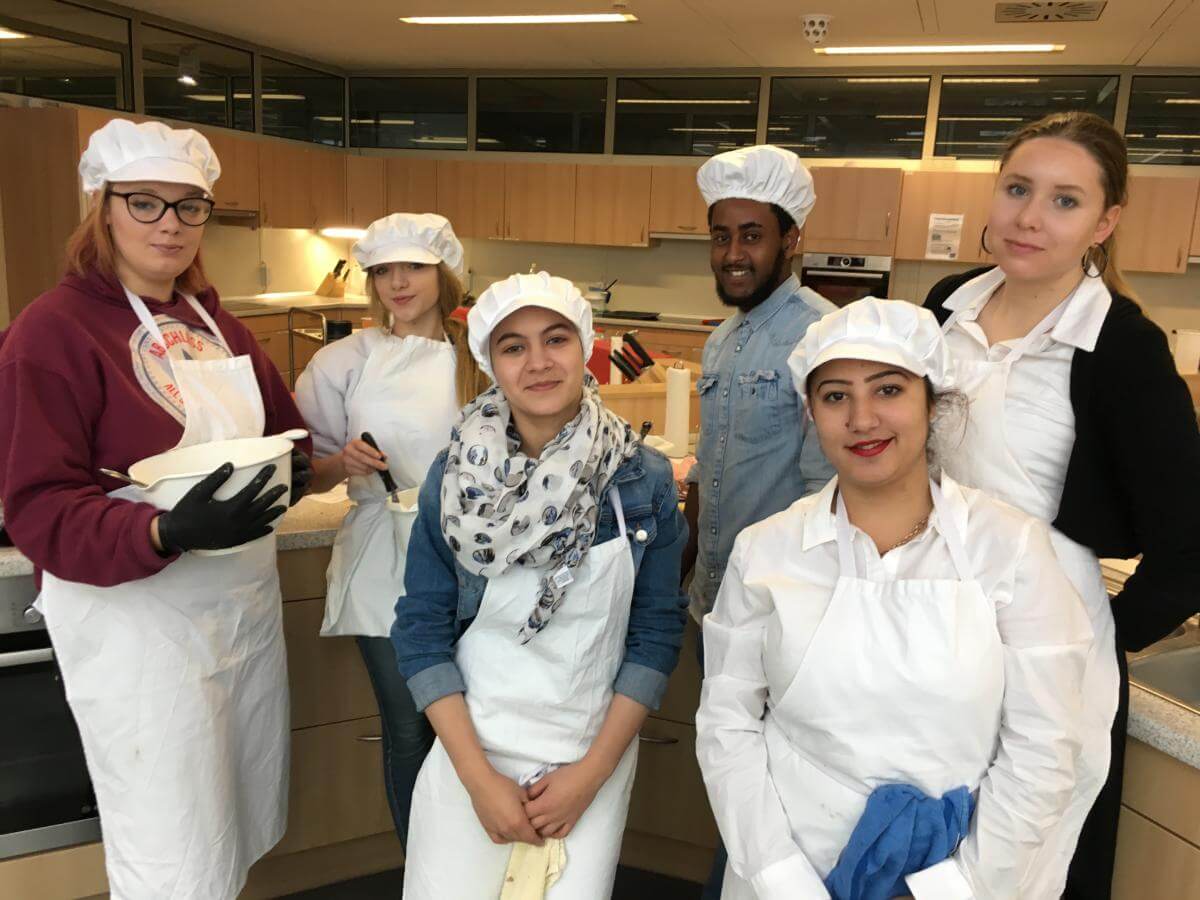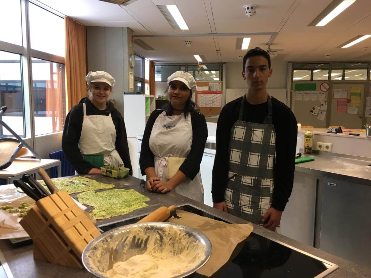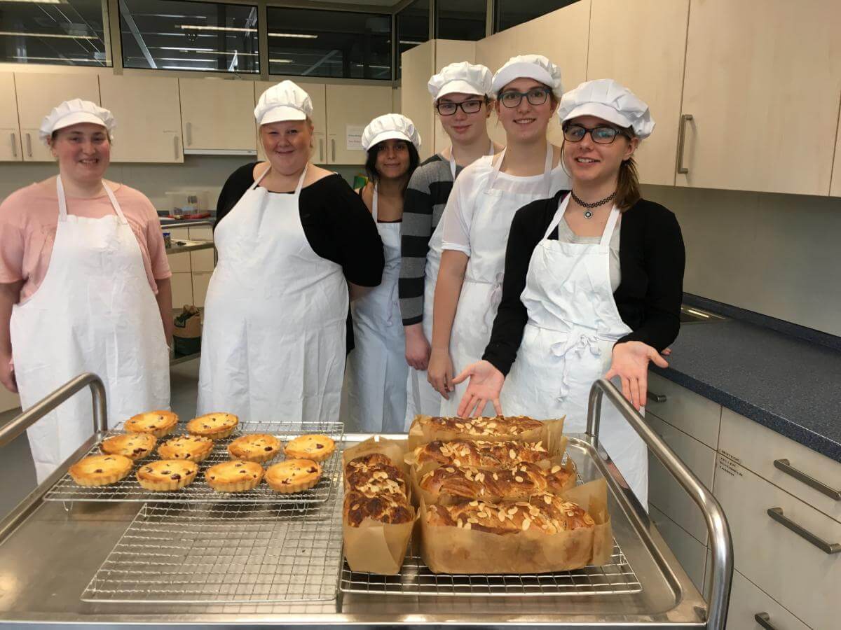 Schüler der VAB-Klassen und des BVE sorgten mit einem Projekttag für die Durchführung des Sektempfangs, die Tischdekoration, Bewirtung mit Getränken und Kuchen, Bestuhlung der Aula, der Herstellung aller Gebäcke und natürlich auch aller damit verbundenen Spül- und Aufräumarbeiten. Alle Schüler und Schülerinnen haben sich dabei von ihrer besten Seite gezeigt und sich unermüdlich um das Wohl der Gäste gesorgt.