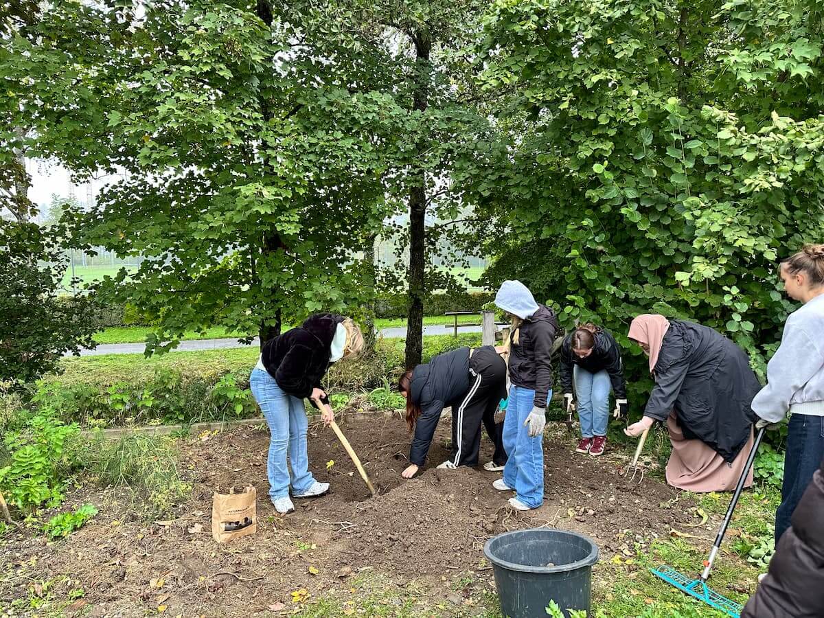 Der neue Kurs des Wahlfachs BNE der Fachschule für Sozialpädagogik durfte bereits im September mit der Kartoffelernte in das Ackerjahr starten. Danke der guten Vorarbeit des Vorgängerkurses konnte in den weiteren Stunden noch Kohl, Mangold, Kürbisse, Lauch und Sellerie geerntet werden. Teile des Gemüses durften die Schülerinnen selbst in der Küche verarbeiten und genießen und der Rest wurde und wird von der Klasse AVdual2 in schmackhafte Suppen für die Suppenküche verarbeitet.