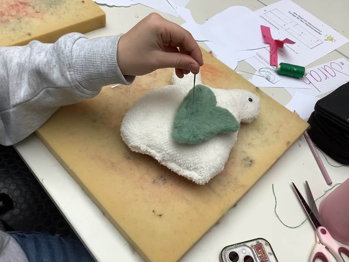 Im weitern Verlauf gestalten die Schüler*innen ein eigenes Kuscheltier und durchliefen dabei einen vollständigen kreativen Prozess – von der Idee bis zur handwerklichen Umsetzung. Die stärkte insbesondere Selbstvertrauen und Entscheidungsfähigkeiten.