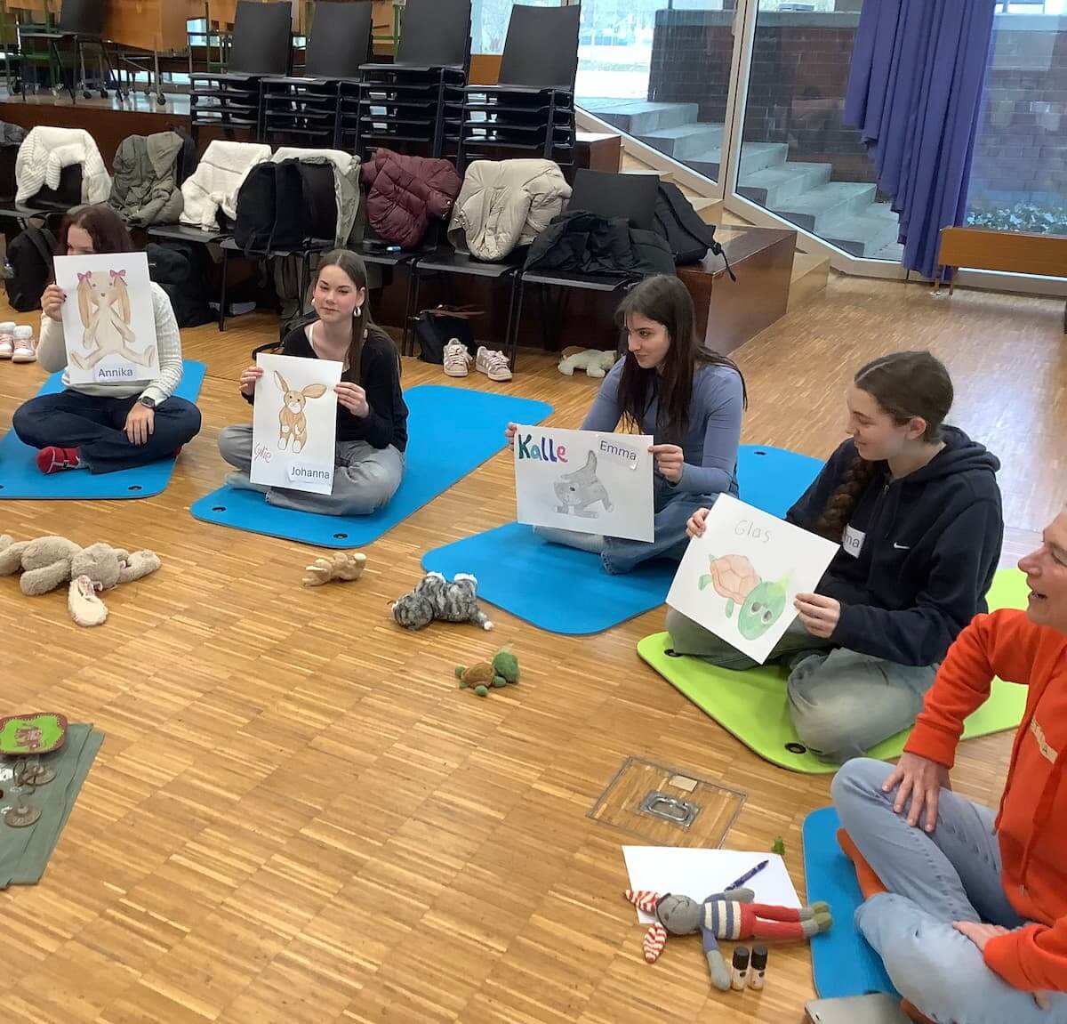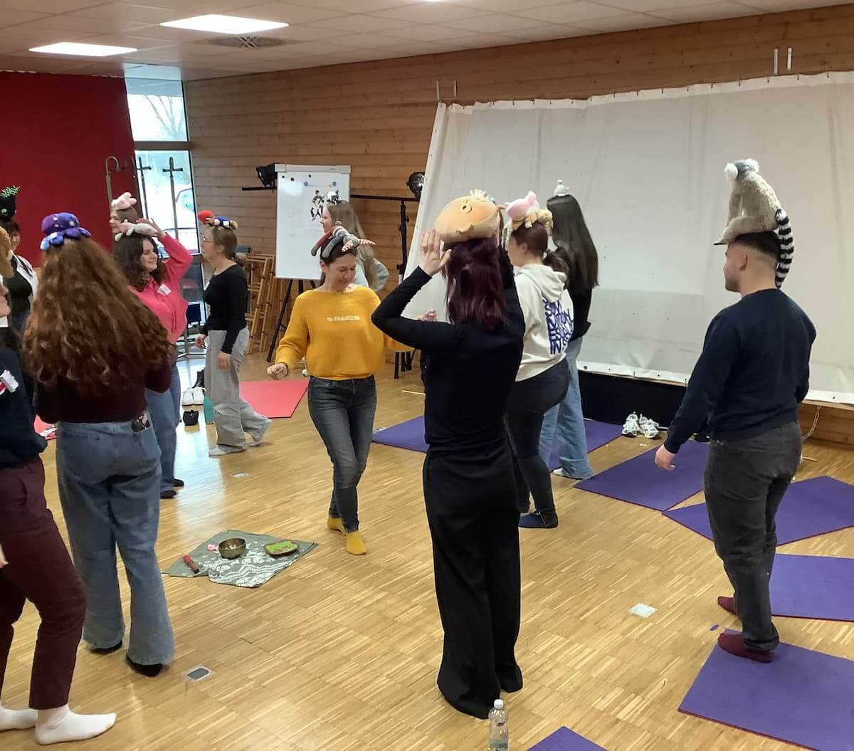 Ein wichtiger Bestandteil war die Verbindung von Musik, Bewegung und Kreativem Ausdruck. Durch Tanz, Body Percussion und spielerische Übungen sammelten die Schüler*innen eigen Erfahrungen und lernten Methoden kennen, die sich direkt in die pädagogische Praxis übertragen lassen. Inhaltlich wurde unter anderem das Thema „Gefühle“ behandelt, das sowohl im Gespräch als auch gestalterische vertieft wurde, etwa durch die Entwicklung von „Gefühls-Monster“.
